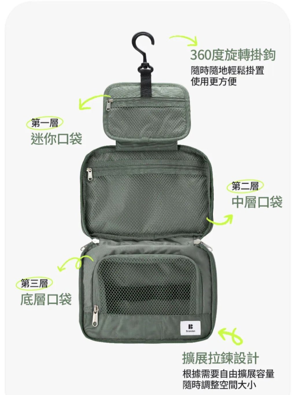 (預購,12/1 23:59截單)Branden Hainging Wash bag 掛式洗漱包
