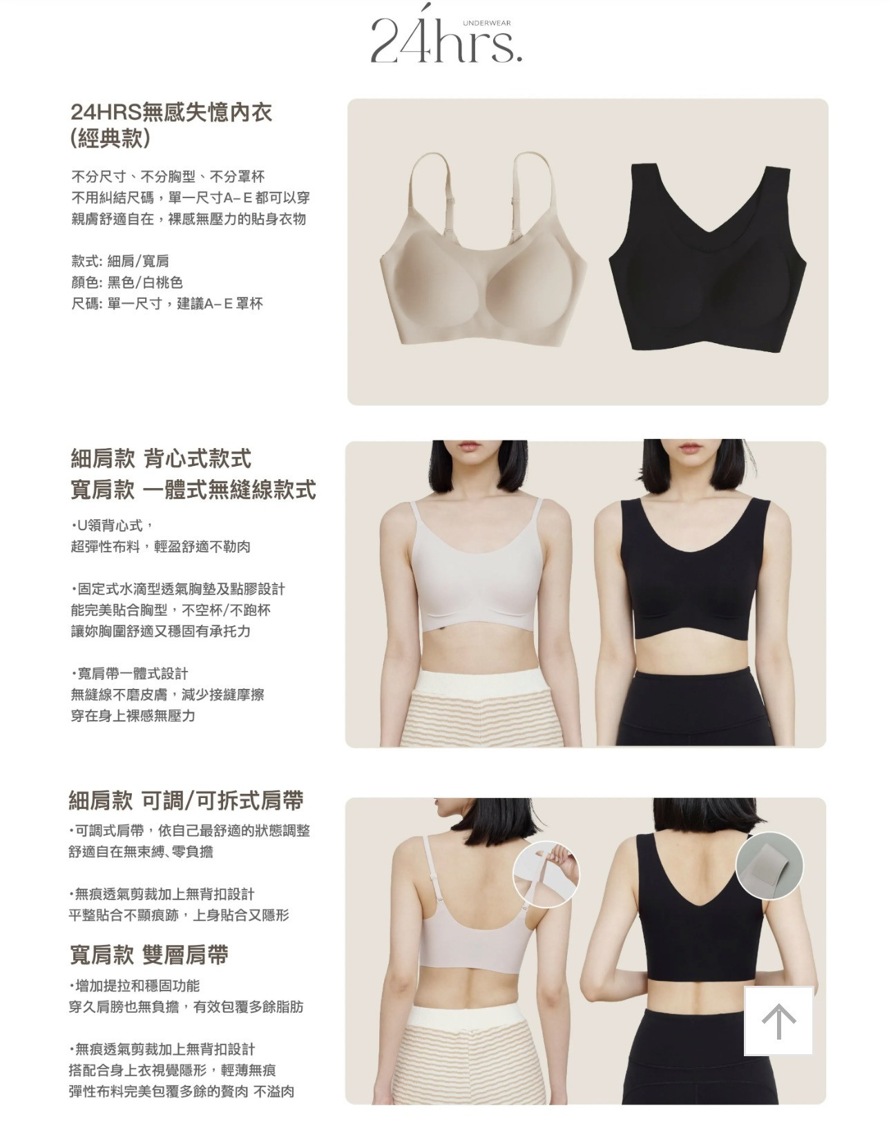 ▪️ 細肩帶可調節;寬肩帶為一體成型,不可調